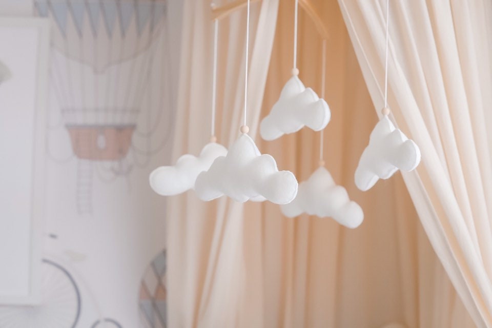 Our beautiful white cloud mobile is perfect for a gender neutral nursery or for a lover of calming fluffy white clouds.