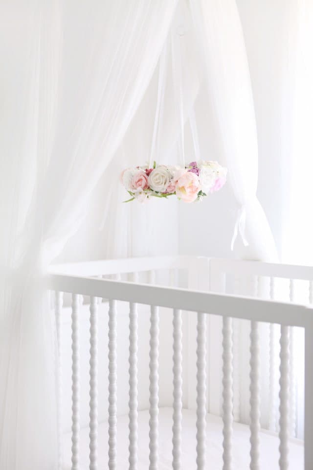 This beautiful floral chandelier baby mobile will complete your little darling's room.